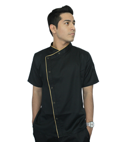 Es una camisa para hombre, color negro. Contiene broche con sesgo dorado, se ajusta al cuerpo del hombre, hay para diferente tallas.