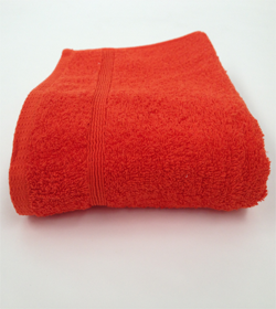 Toalla hecha con algodón color rojo, super absorvente disponibilidad en tres tallas.