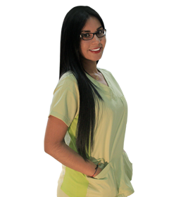 Conjunto bicolor, de uniforme verde con bordes verde limón, accesibilidades a cambio de colores, cuello en v con un bolsillo superior delantero y dos inferiores de la blusa.