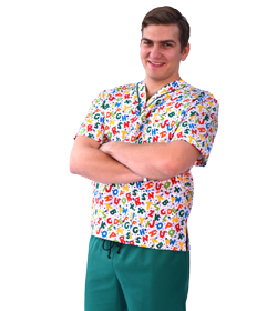 Conjunto de hombres con detalles en la camisa modelo clásico sencillo. El pantalón es de modelo sencillo unisex. La blusa con detalles tela antifluido (cualquier liquido resbala), contamos con diferentes diseño tanto como pediatría, odontología, medios, etc.